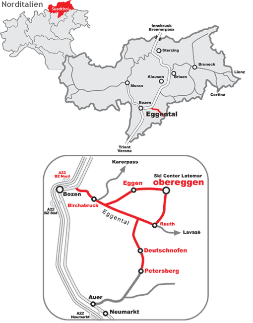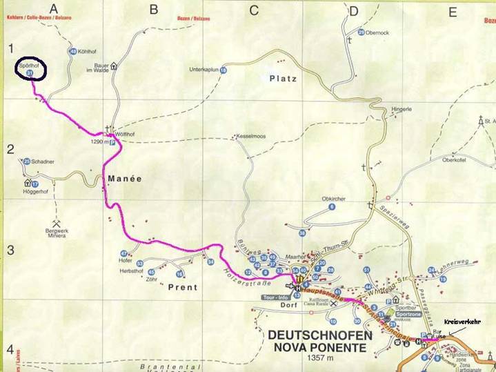 Vom Norden kommend: In Deutschnofen angekommen fahren Sie bis zum Parkplatz hinter der Kirche